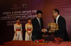 君顶酒庄总裁陈云昌与上海保时捷俱乐部副会长蒋佳学互赠礼品